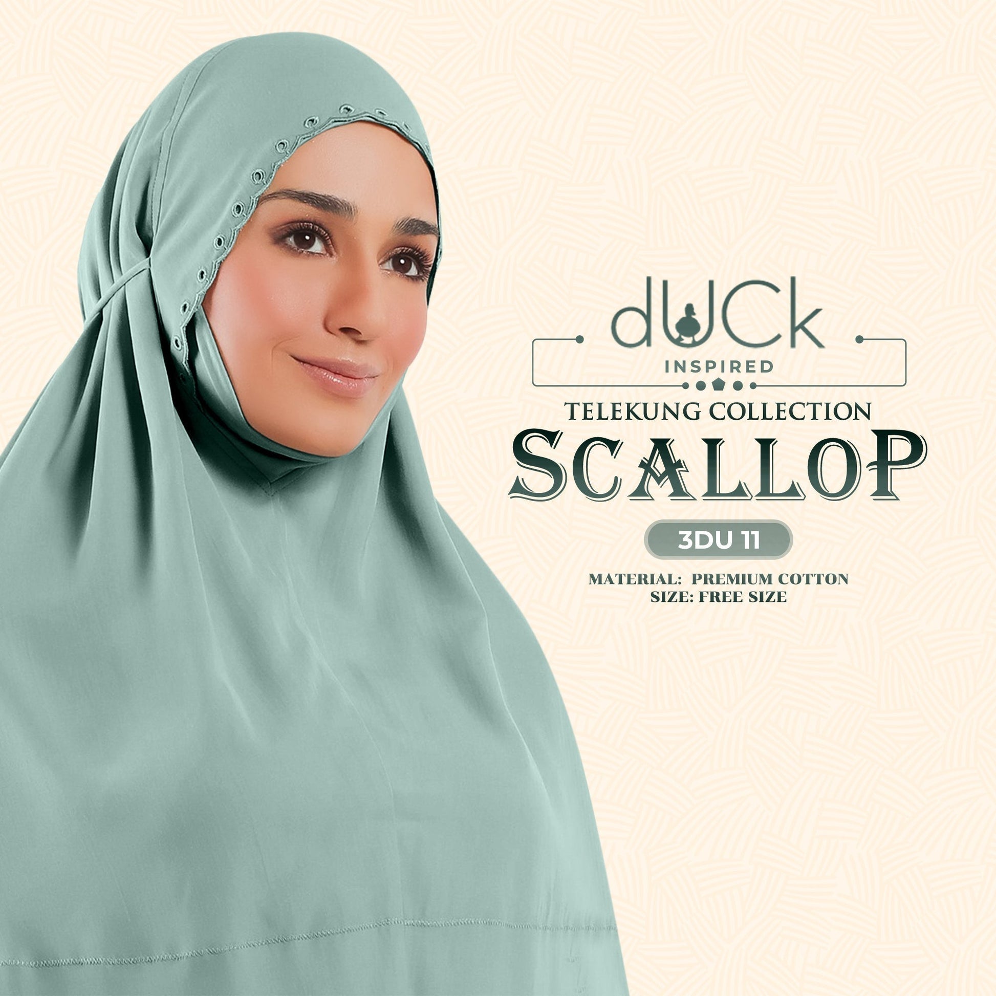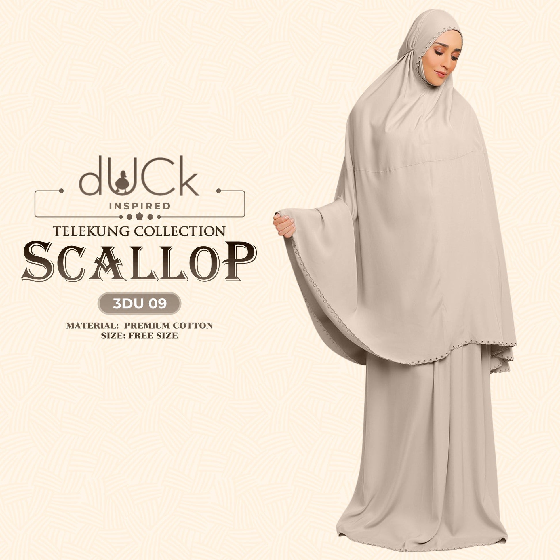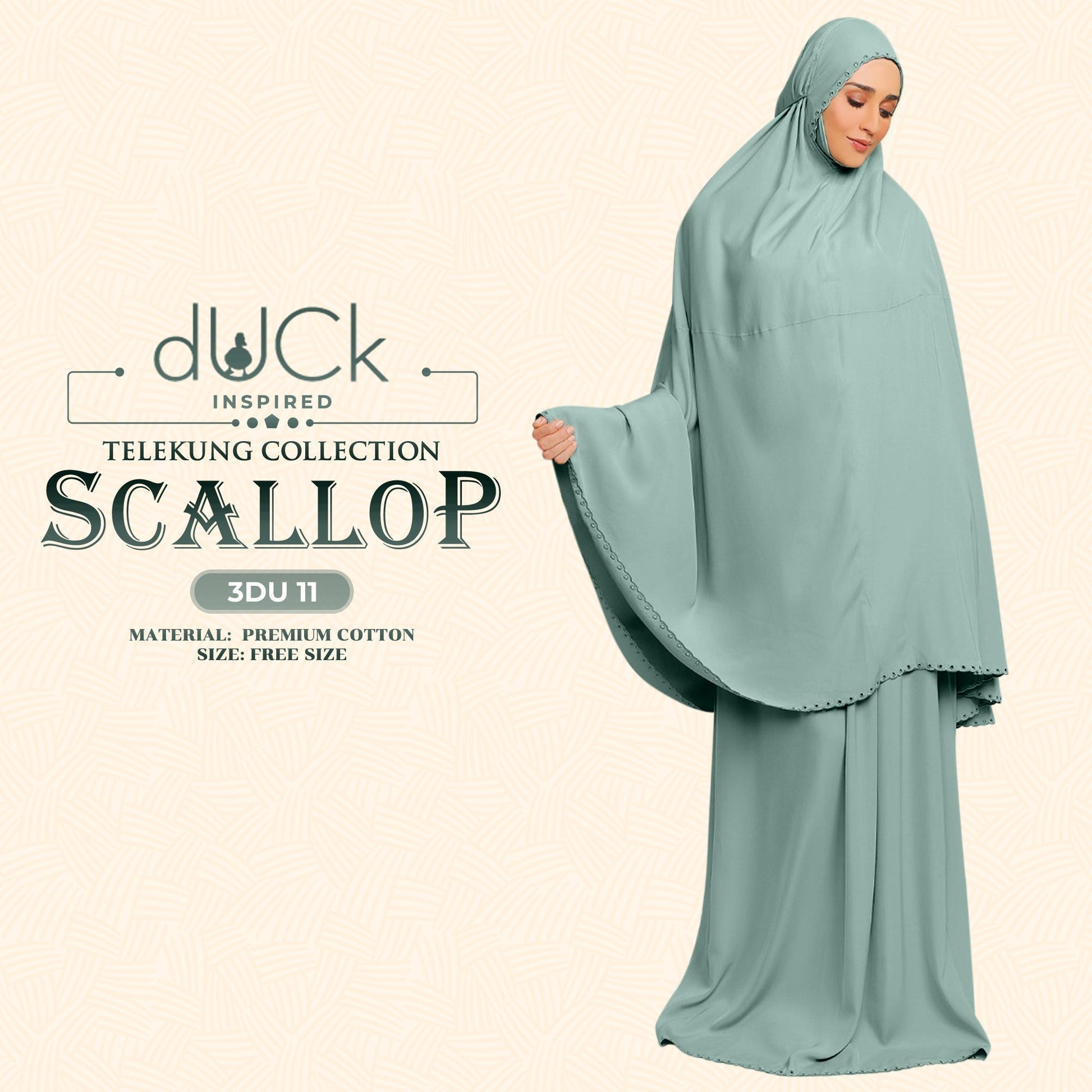 dUCk Inspired Scallop Telekung Collection Free Woven Bag (3DU)